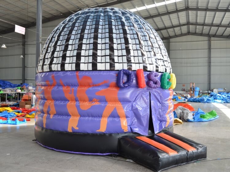 Inflatable disco dome is combin bounce house and party tent in one. With vibrant colors, built-in led light and speaker, this disco dome can bring music, motion and excitment for your celebration.