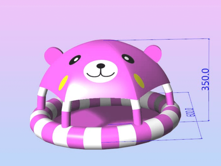 Cute Bear Theme Inflatable Swimming Pool with Canopy.There are 2 colors for you to choose, one is pink and the other is green. This pool designed in a circular shape with Candy-striped sides and bear-face canopy roof. This kind structure ensures the safety and can effectively help children resis ultraviolet rays.