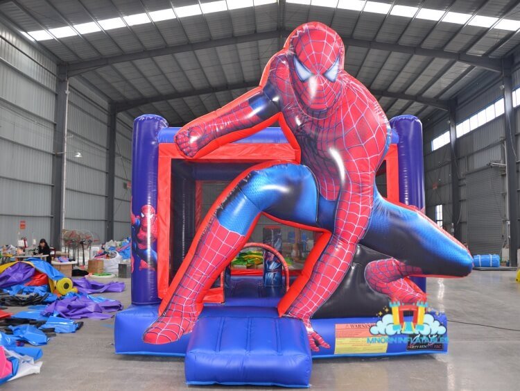 This is a Superhero theme Inflable jumping castle. With the 3D Spider-Man style figure to catch the eyes of customers. This Spiderman Jumping Castle is perfect for birthdays, school carnivals and party rentals.